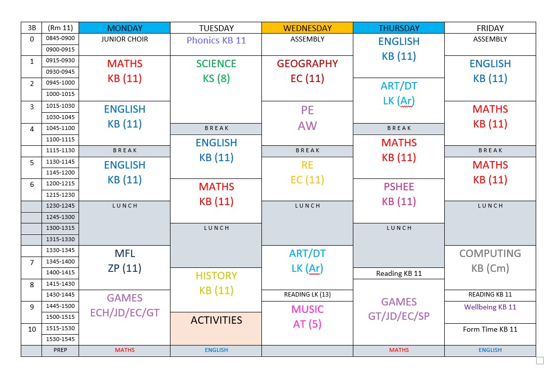 3B Timetable