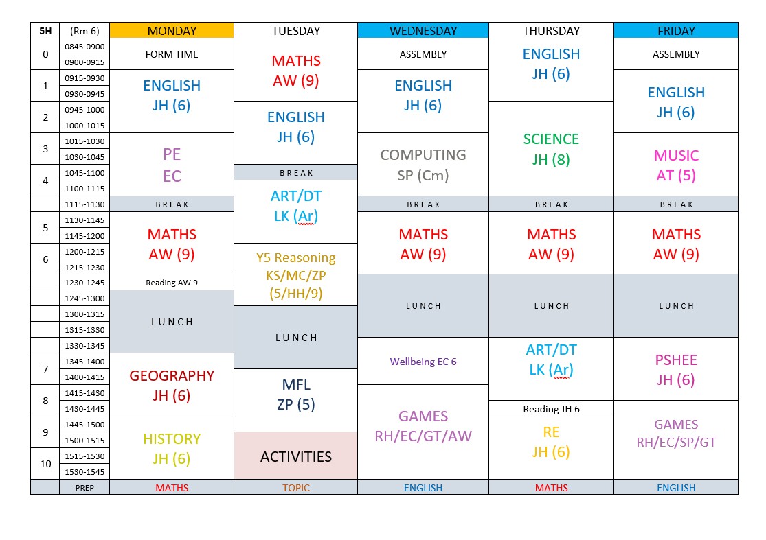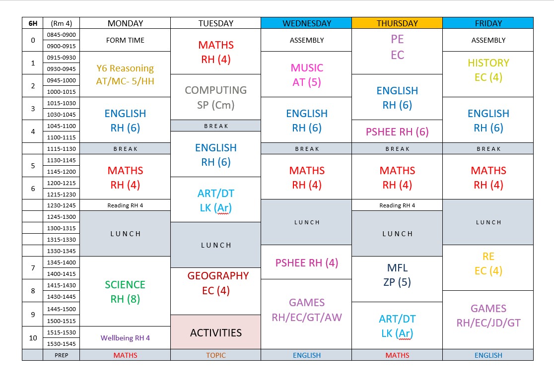 6H Timetable