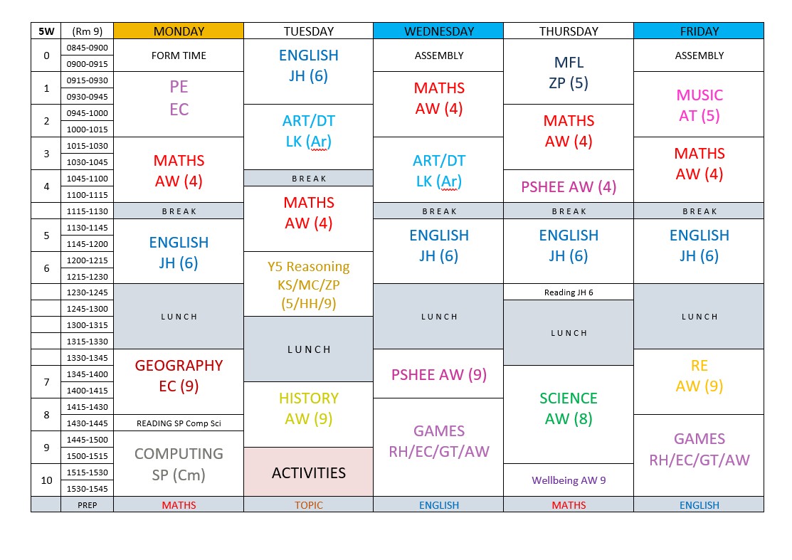 5H Timetable